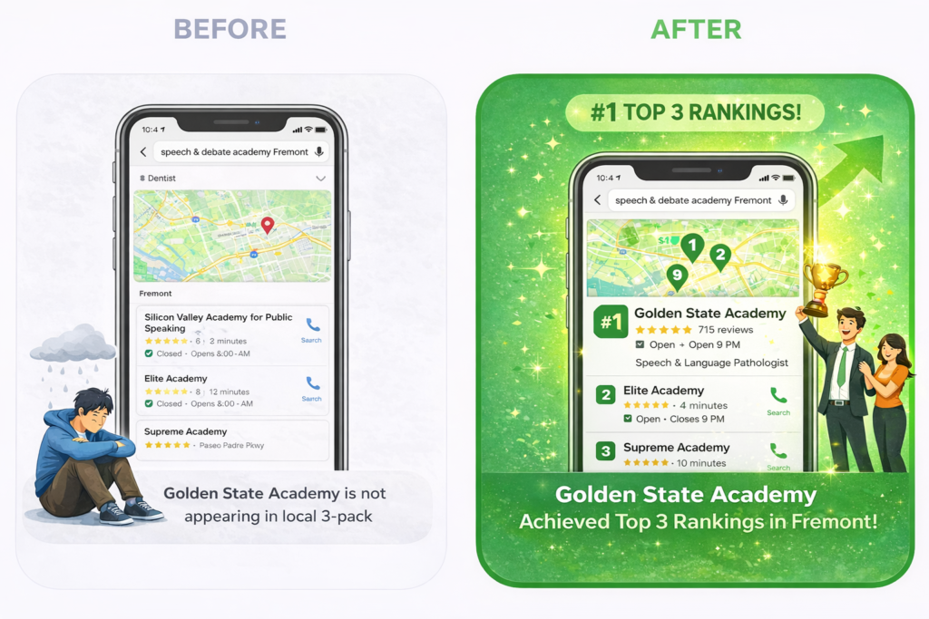 Moved from low visibility to Top 3 Google Maps rankings in a highly competitive local market, driving a massive increase in calls and student inquiries.